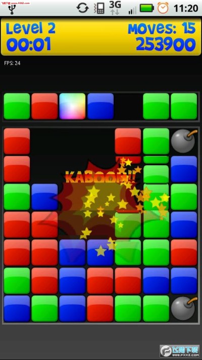 它有着俄罗斯方块和钻石迷城的影子,但却利用了手机的重力感应,使其更具新意。PuzzleBlox使用加速器,而你要将三个或更多连在一起的同色方块清除。怎样使同色方块连在一起呢?转动你的手机,方块们便会以自由落体的形式重新掉落排列,在这其中,将会有几块固定住的方块无法移动,对游戏造成阻碍,你要想办法克服困难。同时,你必须越来越快,因为方块掉落的速度可不等人哦!另外,游戏制作上有一个蛮细腻的地方,那就是当掉落的方块触及墙壁,会很逼真的惯性下跌(反弹),这让它们看起来更像是真实掉落的小家伙了。