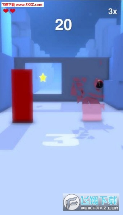 2、前面的柱子很碍事,而且还总动来动去的,想办法划出弧线绕过它们进到洞里,每次都有3天生命,如果撞了三次就游戏失败;