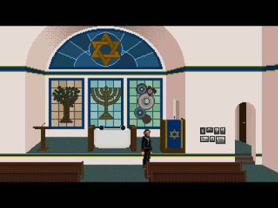 《七日丧期:犹太教版》中玩家将继续跟随Rusell Stone的脚步,探访纽约城中的犹太教会,收集线索与情报,将谋杀案的真相公布于世。游戏用略显粗糙的像素风画面为我们营造出一种希区柯克式的冒险氛围。