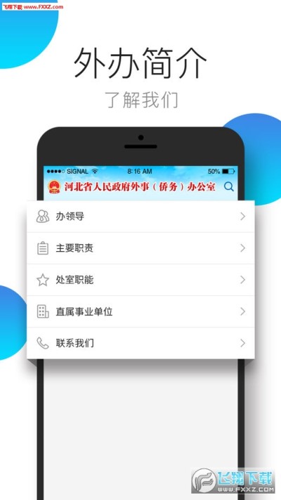 河北省外事办APP是河北省人民政府外事(侨务)办公室发布外事信息和提供在线服务的新媒体平台,现开通要闻、动态、通知、政策、专题、外事服务、友好城市等栏目,第一时间权威发布重大外事方针、政策、重要通知等外事信息,同时提供签证简讯、出入境指南、审批事项指南、附件下载等外事服务,建设基于新媒体的政府与公众互动交流新渠道。