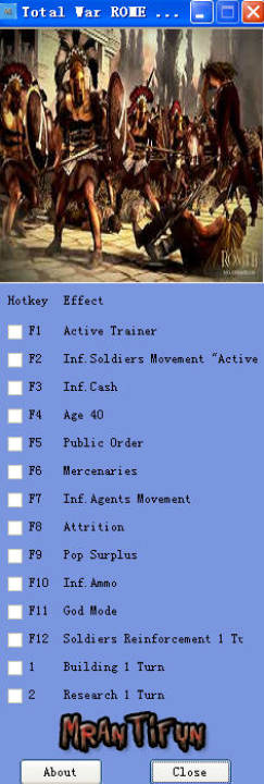 《罗马2:全面战争》的修改器种类很多,每一个版本都会有相应的修改器。下面给大家带来的是MrAntiFun的v1.7十三项修改器。