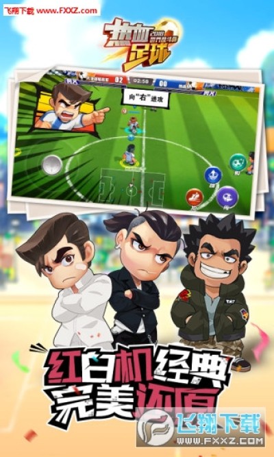 《热血足球》原作是一款经典的红白机游戏,12个六人足球精英组成热血队,前往挑战世界各地的冠军球队,本手机作品正是以此产品为IP,在手机端完美还原了休闲足球的体验,玩家可在游戏内感受到原作一样的各式射门方式,旋风盘球、爆炸射门、太极射门、食人鱼射门等等。同时,游戏提供了实时对战模式,玩家与玩家进行竞技,体验不同于传统足球竞技的体验。