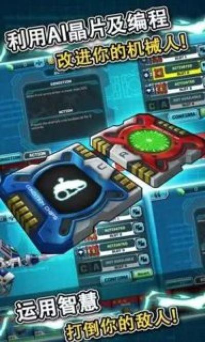建立,调整和编程你自己的可爱的战斗机器人挑战其他玩家!简单的基于块的编码功能可以让您设置A.I.!观看惊人的机器人战斗!