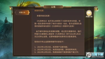 由于蜗牛游戏业务发展的调整,经过官方慎重考虑,我们怀着万分遗憾的心情宣布《九阳神功2》将于2022年1月20日正式停止运营,这意味着届时玩家将无法登录游戏。