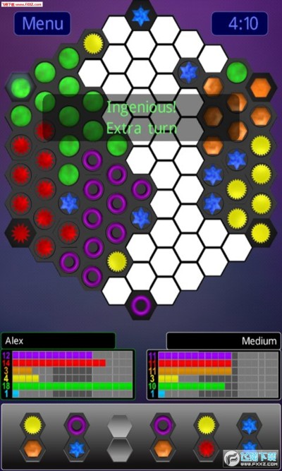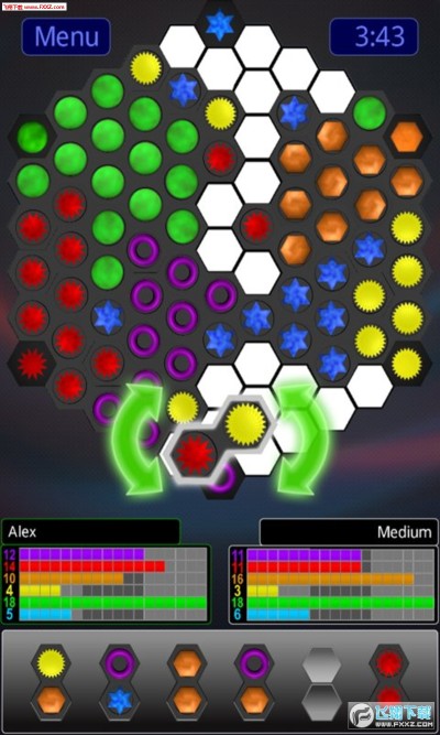 《智谋棋(Ingenious)》是一款休闲益智的棋盘类手游,游戏画面由不同色彩的图形组成,游戏玩法比较复杂;玩家需要在一个巨大的6变形棋盘上下棋,最终分数最多的一方获胜;喜欢的话就来下载体验吧!