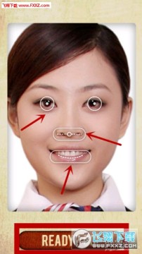 打开图库的图后,把眼睛和鼻子还有嘴巴调整好,点击“”READY?GO!"按钮;