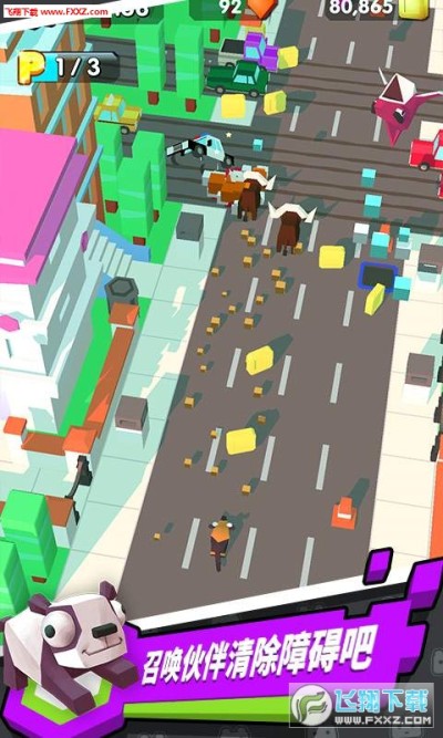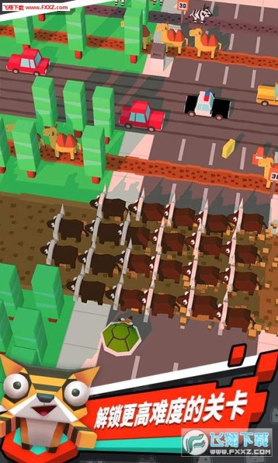 在游戏中玩家操纵一个刚从动物园逃跑的动物,面对川流不息的车辆和纷繁复杂的街道,你必须通过横穿街道来帮助小动物尽快逃往更加广阔的大自然当中去。小动物在高速移动的情况下,还可以利用玩家高超的技巧收获尽可能多的金币和道具,以便解锁更多的小动物一起奔跑!萌货小动物,让我们一起跑起来!