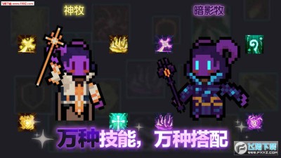 1、趣味的像素游戏画风,游戏中玩家可以收集到各种职业的角色人物来组建你的冒险小队;
