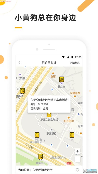 【附近回收点】一键查看附近回收机,小黄狗总在你身边,就像大家熟悉的快递柜一样