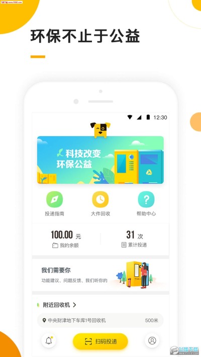 小黄狗app是一款旧物回收的软件,小时候都会有专门的废品回收的人上门收购,现在小黄狗也可以哦,在小黄狗app上可以直接扫描投递废品,还能在小黄狗终端投递废品能换钱,绿色又环保的事情快来下载试试吧!
