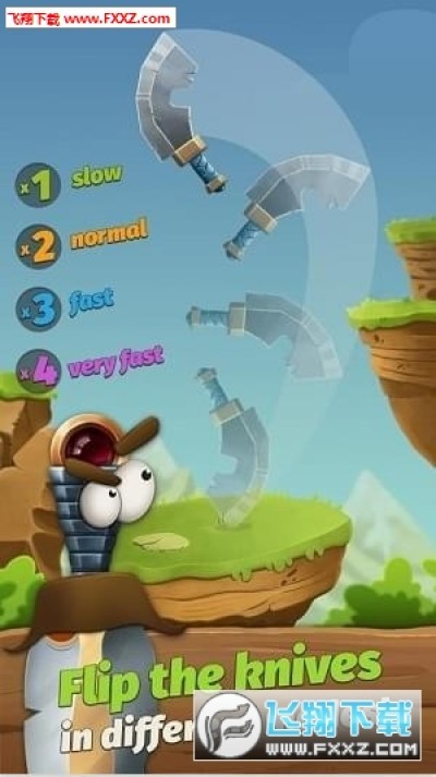投掷你的飞刀,让他在天上进行旋转并重新的插进土里,不同的飞刀重量是不同的,要记住每次你滑动的距离和角度,下一次进行修正;