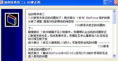《仙剑奇侠传2》的升级档将会对整个游戏进行优化,修正部分BUG。下面是简体中文版V1.05完整升级档。