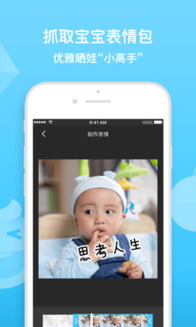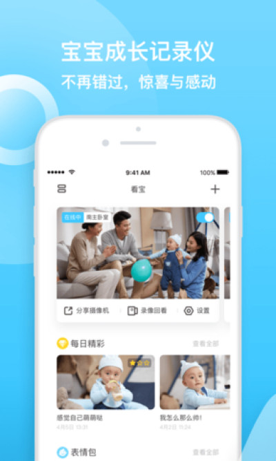 24小时不间断记录宝宝小情绪,自动优选适于制作表情包的动态素材,无需切换APP即可完成表情包裁剪,添加字幕等操作 ,可一键分享至家人微信群或朋友圈 。
