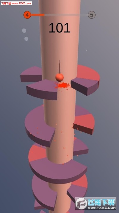 游戏中,玩家将转动螺旋状的游戏界面,让小球从上一层的界面空袭里落到下一界面,小球不可以触碰到界面中的红色板块,否则,游戏就会结束。游戏还提供各种不同颜色的游戏界面,玩家可以不断刷新自己的分数进行解锁