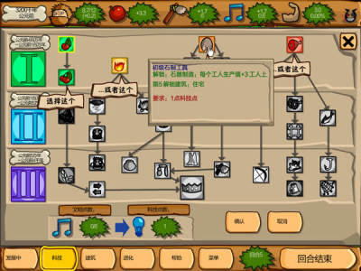 玩家使用鼠标操作即可,游戏中没有复杂的操作。你的目的是在公元前4000年,文明间的角逐拉开帷幕之前,让一群古猿进化成人类,结成部落,发展文化和生产力,成为一个虽然原始但是却充满了无限未来可能性的文明,去参与后世的角逐!