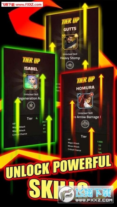 收集的英雄可以进一步提高他/她的属性,提高技能,以及学习新的技能。