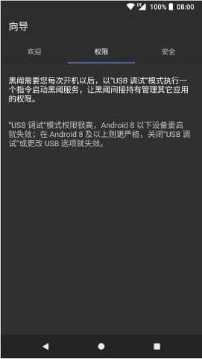 Android 8 起,只要关闭“USB 调试”或更改 USB 选项,黑阈就失效。如果拔线后黑阈就失效,请尝试其它 USB 选项。正常情况下,使用默认选项或“仅充电”就好。
