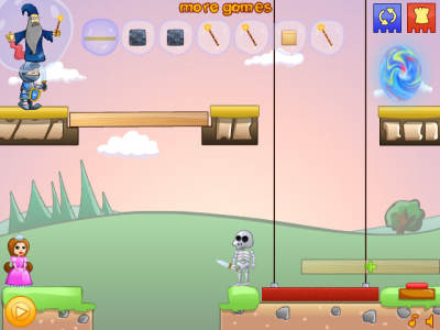 像骑士与魔法师这种类型的益智游戏其实在PC和手机上都有很多,主要是考验玩家的智力。有一段时间,这种类型的游戏非常火,玩家在游戏过程中大多时候其实在不停的测试方法,脑袋要不停的飞转呀!在这款游戏中,魔法师和骑士要相互合作,打败骷髅救出公主。