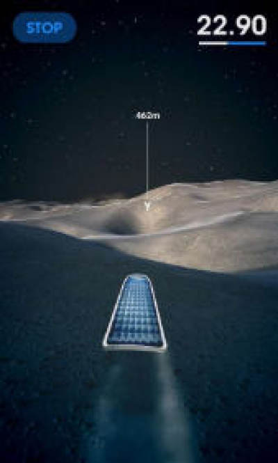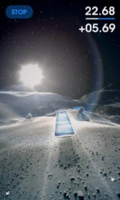 你拿着一块太阳能板,在满月的尘土飞扬的山丘和陡峭的陨石坑中间滑行冲浪。你可以自由的滑行,也可以设置目标终点来练习。