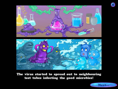 不知何种原因,一个带有危险病毒的试管被打开了,病毒遍布了实验室,除Gloria以外,几乎所有健康的微生物都被感染了。赶快去帮助勇敢的小微生物Gloria,从邪恶病毒Barbadoom那里拯救实验室吧!