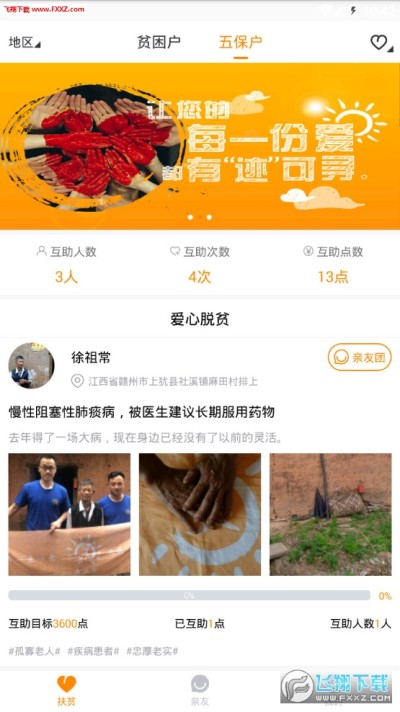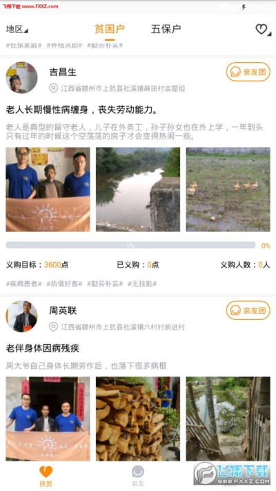 去扶贫app是一款帮助一些贫困家庭脱贫的软件,线下探亲体验的手机app。围绕贫困户建立亲友团,实现精准化、透明化的N对1帮扶,多维度拓展致力打造有温度、有亲情的扶贫社区。