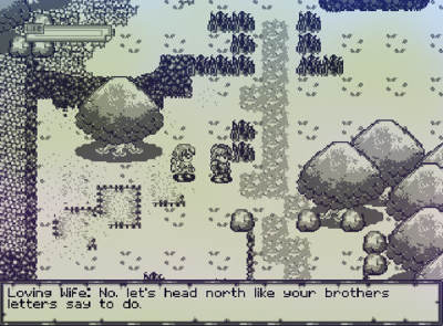 《两兄弟》是一款类塞尔达传说的RPG冒险游戏,游戏采用了像素风格,在一开始游戏采用的是类似于GBC上的画面风格,没有颜色的八位画面,但是随着剧情的发展主角会来到16位拥有色彩的世界中,在两个世界之间切换,并互动是游戏的特色之一。