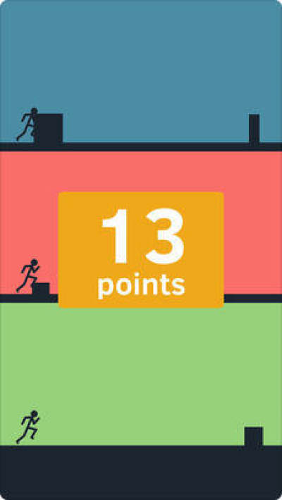 普通模式里,玩家控制的是2条跑道上的2个小人物,