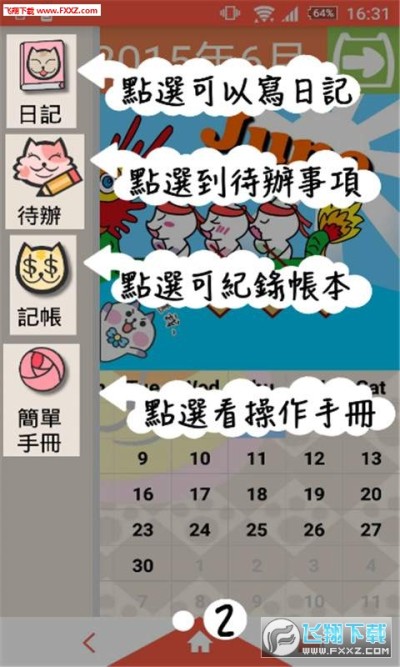 那就赶紧下载使用看看~目前以含有诸多功能可以使用: 手绘:12月份动画背景,型可爱贴图 首页:随月份更换动画背景,隐藏式选单,可选择需求功能 日记:可输入关键字搜寻日记,新增日记,项目长按可进行修改删除