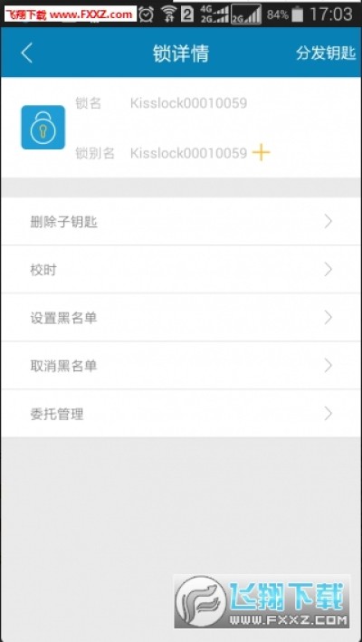 KISSLOCK与手机号绑定,一个账号只能在一台手机上登陆使用。锁主可向锁发送设置黑名单的指令——输入黑名单用户的手机号即可一键设置,即使有子钥匙对方也无法开锁。另有校时和低电提醒功能。当您不在锁附近时,还可通过向其他人发送委托指令,帮助您对锁进行管理。