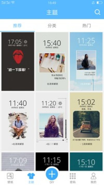 【便捷】选中壁纸,点击DIY,更换文字和图片内容即可。锁屏状态下,你还可以轻松查看时间,电量,天气,短信来电通知。