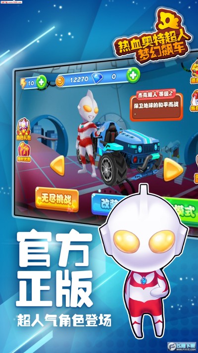 赛车改装,极速飞驰,无敌的奥特超人超越一切挡路的敌人!在游戏中充满各种挑战,需要你逐步体验!各种强敌不断出现,打败他们,成为梦幻赛车之王!
