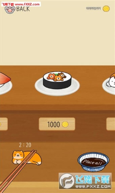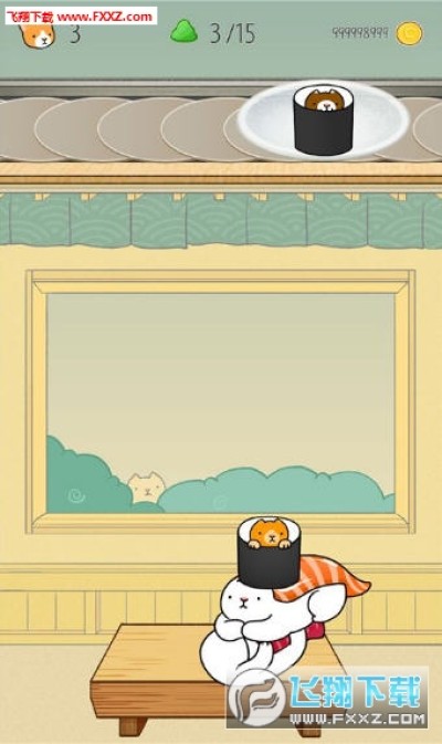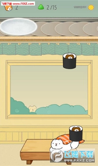 屏幕上方是回转寿司带,会有不同的猫咪以及寿司飘过