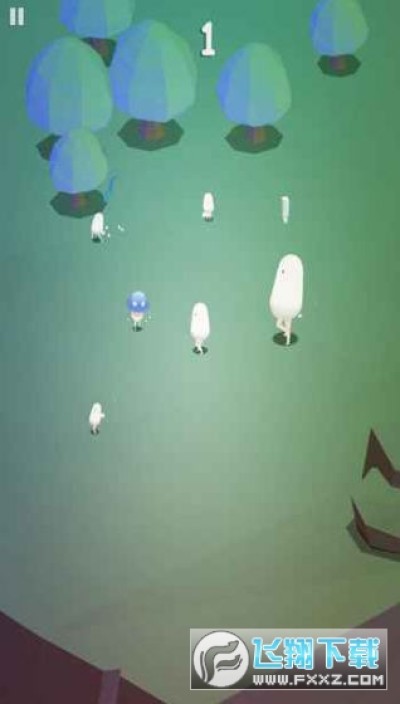 画面中那个形似两条腿上顶了个纯白糯米糍的怪物就是玩家要控制的主角了。点按屏幕并滑动就可以让主角往对应方向移动,在它前进的路上会随机刷新小怪物和金币,那些是主角的重点捕食对象。