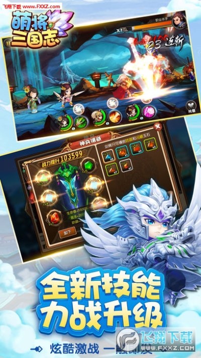 2、普通的卡牌游戏一般都是采用2D的横屏,而《萌将三国志》采用的是45度角俯视战斗,局势轻而易举的全权掌握在手,拿下胜利就不再话下。在使用绝招之时,屏幕也一起震动,画面感更加逼真。