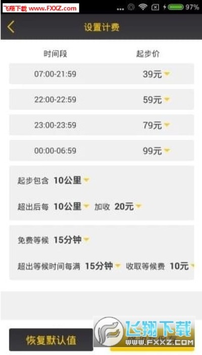 在主菜单栏里有设置计费模板字样,点击进入便可设置起始金额,服务时间等数据,在这里需要注意计费模板中的时间要前后相连,不然有可能保存不上。