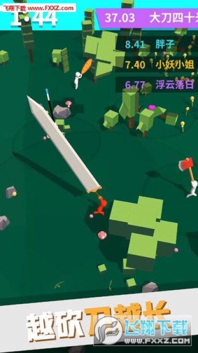 我的大刀40米是一款十分火爆的IO类手游,玩家将通过砍伐周遭环境来增加自己的刀的长度,当然砍人加的更多,但是刀变长以后攻速就会变慢,在规定时间内进入前三即可,快来下载我的大刀40米体验一下吧。