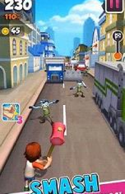 亡都跑酷下载是一款非常好玩的动作跑酷类游戏,本作的画面非常的精美,里面的僵尸也被设计的滑稽搞笑同时又非常的可爱哦!在游戏中,玩家们将在遍布僵尸的城市中奔跑逃生,在奔跑的过程中还可以拾取武器攻击僵尸,但武器的耐久度有限,注意哦。此款游戏的创新之处就是被僵尸咬到还不是游戏的终结,你将变成僵尸继续奔跑去攻击路上的人类,所以人类会为了保护自己也将会用炮弹射击你,直到被人类的炮弹打中,游戏结束。喜欢这款游戏玩法的玩家们快来下载试玩吧!
