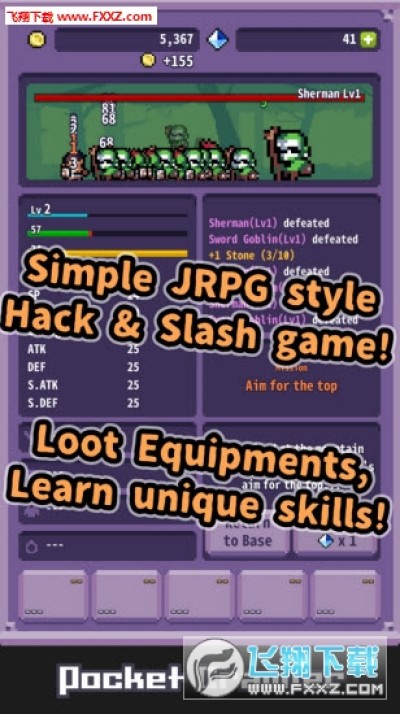 放置口袋地牢中文版是一款玩法简单的放置类游戏,成为勇者探索地牢吧,这里有成群的怪物还有丰富的宝藏等你来探索,强化你的勇者,进化装备,学习技能,不断的探索,挑战强大的boss,挑战无尽的地牢。