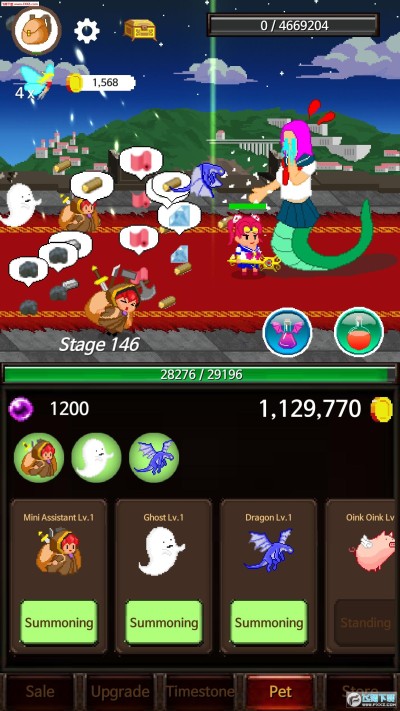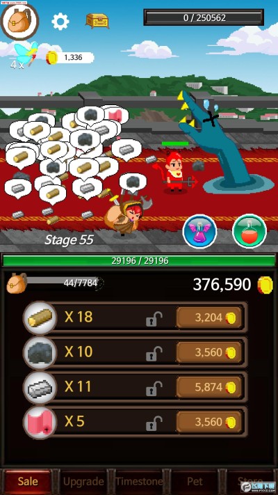 游戏中你扮演骑士的侍从,他打怪你需要帮他捡东西,将捡到的木材、钢铁等拿去卖掉换取金币,用换来的金币给骑士升级技能、血量等。