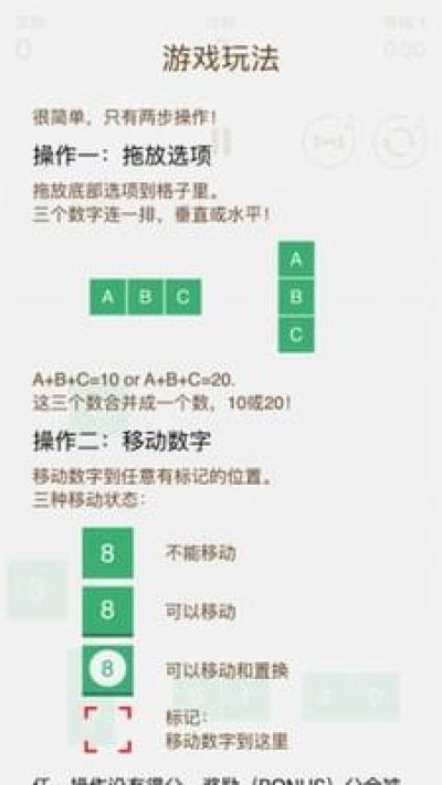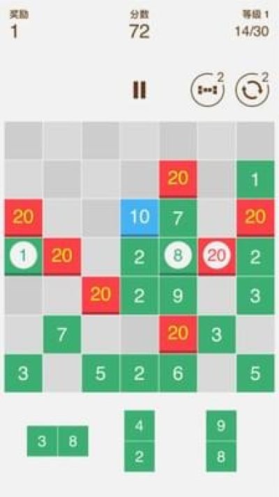 拖放数字,让三个数字相加为10或20,便合并为一个数字。