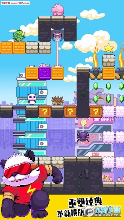 《超级熊猫侠》是一款经典街机模式的冒险闯关类游戏,令人怀旧的画风设计,但是画面设计变的更加精致,还融入一些现代化元素,会比较符合当代人的喜爱;游戏玩法和操作都十分简单流畅,趣味性十足的一款游戏,也能帮助大部分玩家找回童年!喜欢的话就赶紧下载体验吧~