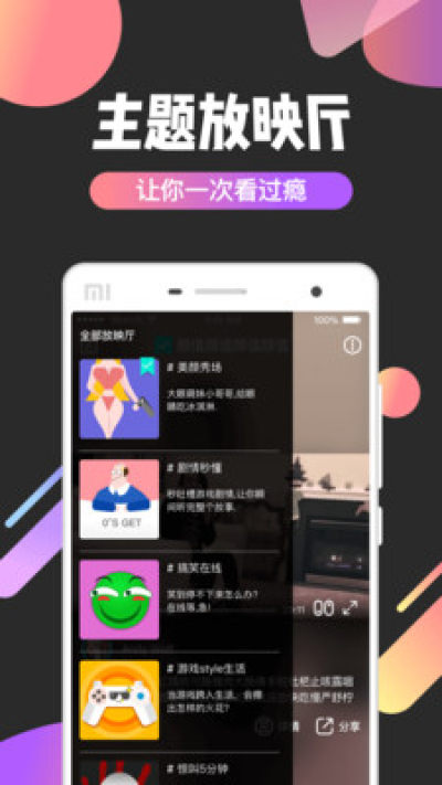 3. 支持通过推荐、搜索功能,点击主题放映厅等快速找到感兴趣的视频