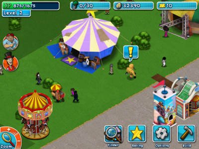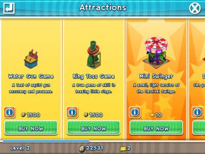 《金票:西门的游乐园》是一款模拟经营类的小游戏,游戏中你将会经营一家老游乐园,帮助它恢复往昔的荣光。游戏在官网上是一款免费下载的游戏,作为一款PC平台的单机游戏居然很无耻的开启了内购功能。游戏中建造建筑、表演项目、升级道具所需要的时间全部都是以现实时间的小时计算,当然你可以用金奖票加速,不过金奖票需要你用现金或者是天文数字的游戏货币购买。