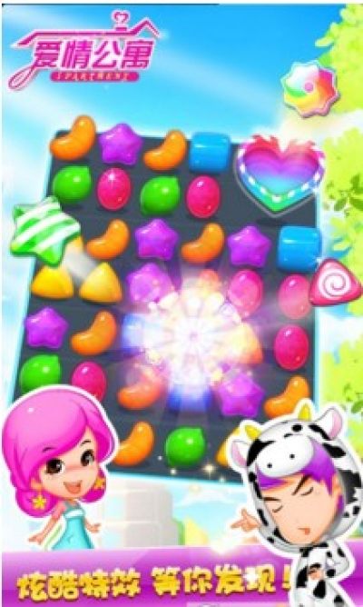 1,游戏的主题为可爱的糖果,三颗同样颜色的糖果放嘴里一嚼就没了!!!喝喝,我在逗你。