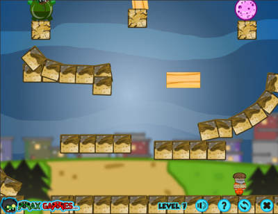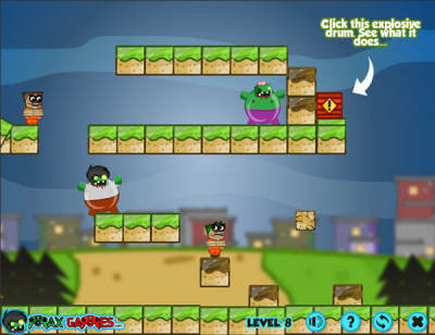 该游戏是一款物理类游戏,你需要根据场景的设定,使用消除恰当的方块、启动按钮等动作,让每一只僵尸都吃到一个人。
