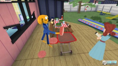 ▲玩家扮演的章鱼有一位漂亮的老婆,和两个孩子,你得像现实中的父亲一样,哄老婆开心,陪孩子玩