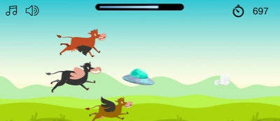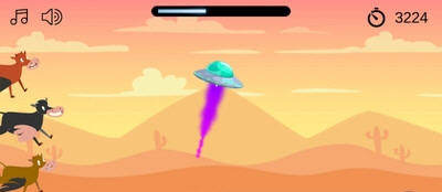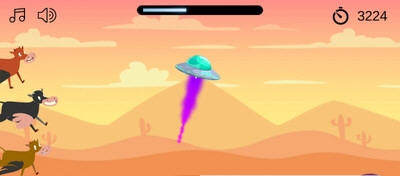 外星人绑架牛游戏是一款十分魔性的休闲小游戏,玩家绑架了一只可爱的小牛奶,它的家人会在后面疯狂的追逐你,要躲避前方的障碍,顺利劫走小奶牛,喜欢的小伙伴赶紧来下载这款外星人绑架牛游戏吧~