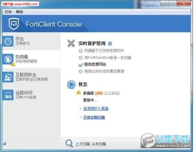 飞塔杀毒forticlient是一款非常受欢迎的杀毒软件,使用这款软件能够有效的防止恶意软件安装,并且这款软件还能够定时的进行检测扫描系统,操作方法十分的简单,需要的小伙伴赶快下载吧。