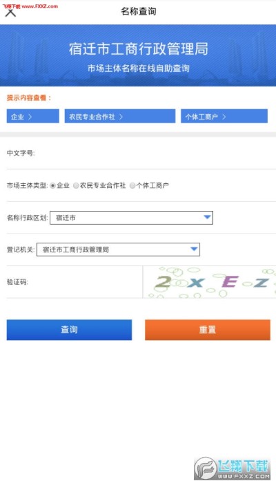 2、根据用户所选地市,将申请分发到对应地市工商外网数据库