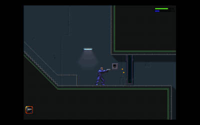 玩家在整个游戏过程中都要注意跳跃的高度,基本上是屏幕看不到地面的高度,这样的情况跳下去就会掉血的。进入建筑后上了二楼一直往左走,玩家就可以得到一把枪,会让你在面对敌人时轻松很多。